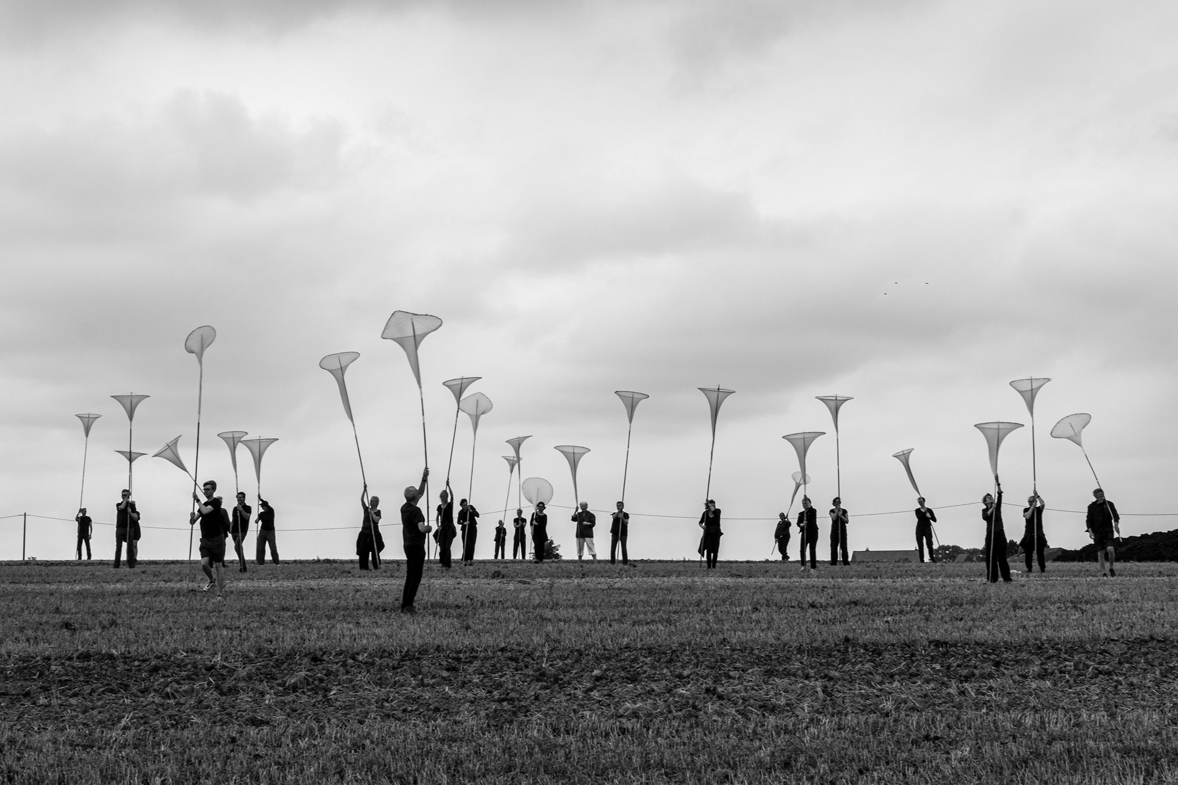 What does silence sound like? Can we capture it? Preserve it? We go in search of something intangible. A journey to the vibration of silence, to the power of the inaudible. A magical vibration that reminds you where you belong. In the summer of 2025, a group walked in silence through the landscape of Watou. They attempted to measure, capture and preserve HET GELUID VAN DE STILTE (the sound of silence). Each walker carried a stick with a ‘silence catcher’ on top. The ‘silence catchers’ walked in slow motion, fully focused on their bodies and themselves in relation to their surroundings. This group performance is the starting point for the final presentation at Art Festival Watou in the summer of 2026. It consists of a video and an art installation with a poetry organ. In both setups, we attempt to find a visual language for the sound of silence.